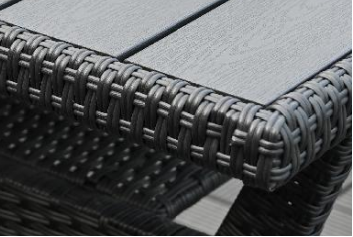 其他材质:喷塑:黑色YJ002 塑木:黑色 钢架+塑木板桌面+PE藤条